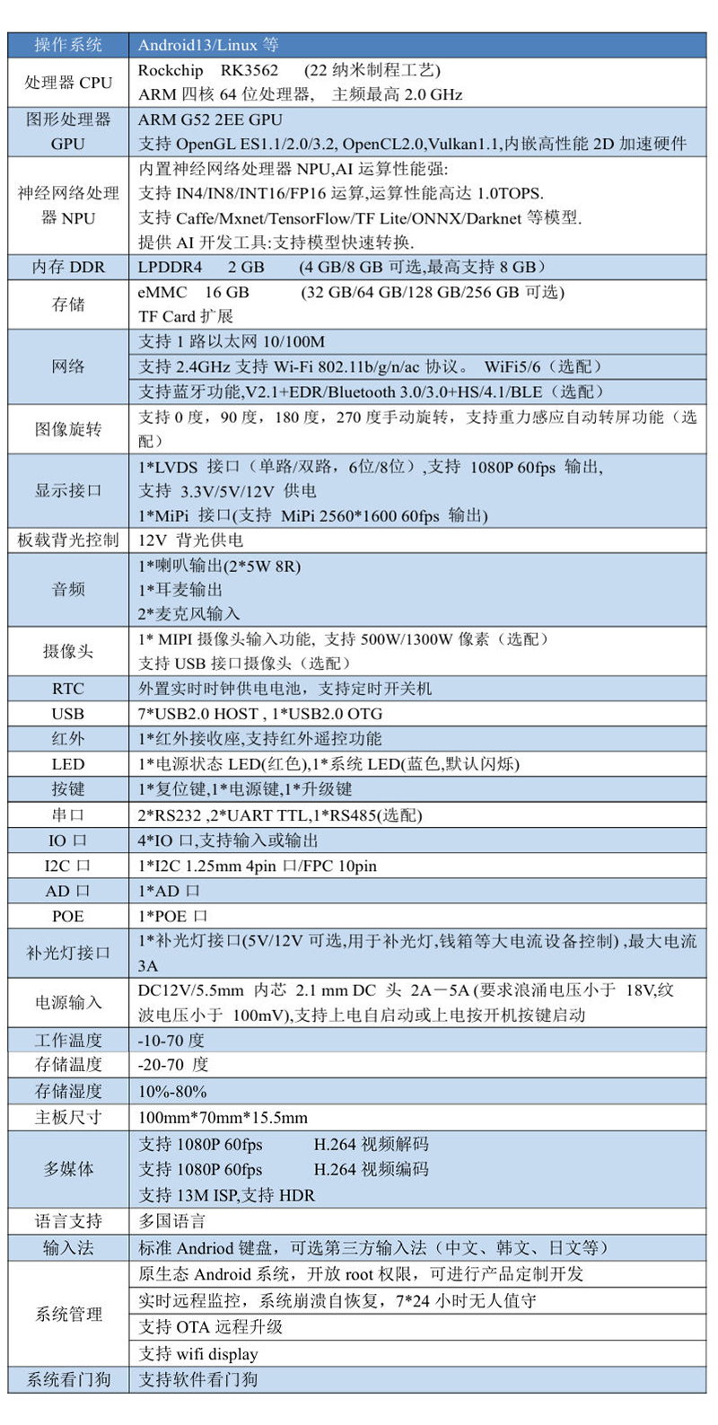 | 處理器CPU | Rockchip RK3562 |